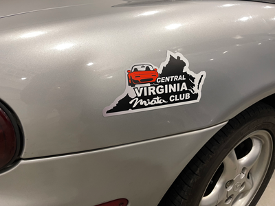 NEW beginning August 23, 2025 - All members will receive one 8" x 3.96" CVMC Logo Magnet for their Miata when they attend their next CVMC drive. Additional magnets can be purchased at CVMC meetings or drives for $5.00/each made payable to CVMC Inc. Contact the webmaster for more information: zoom@centralvirginiamiataclub.net.
